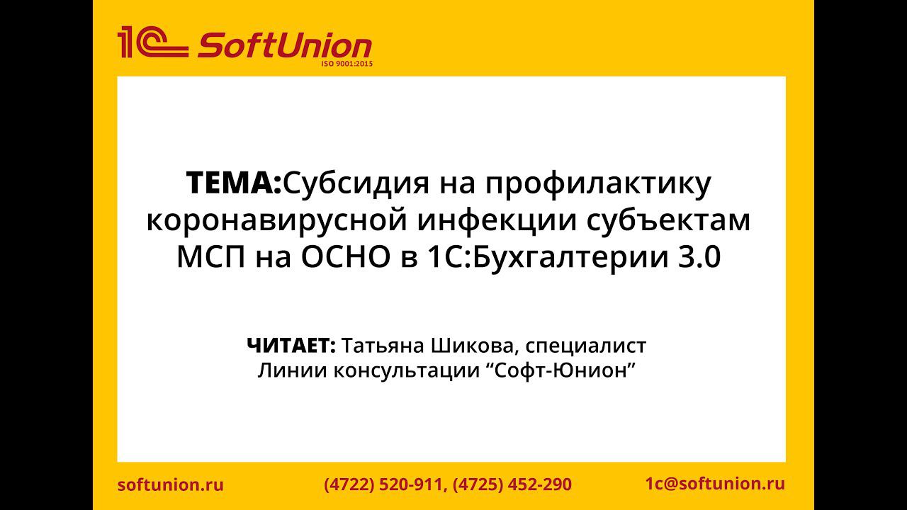 Субсидия на профилактику коронавирусной инфекции субъектам МСП на ОСНО в 1С:Бухгалтерии 3.0
