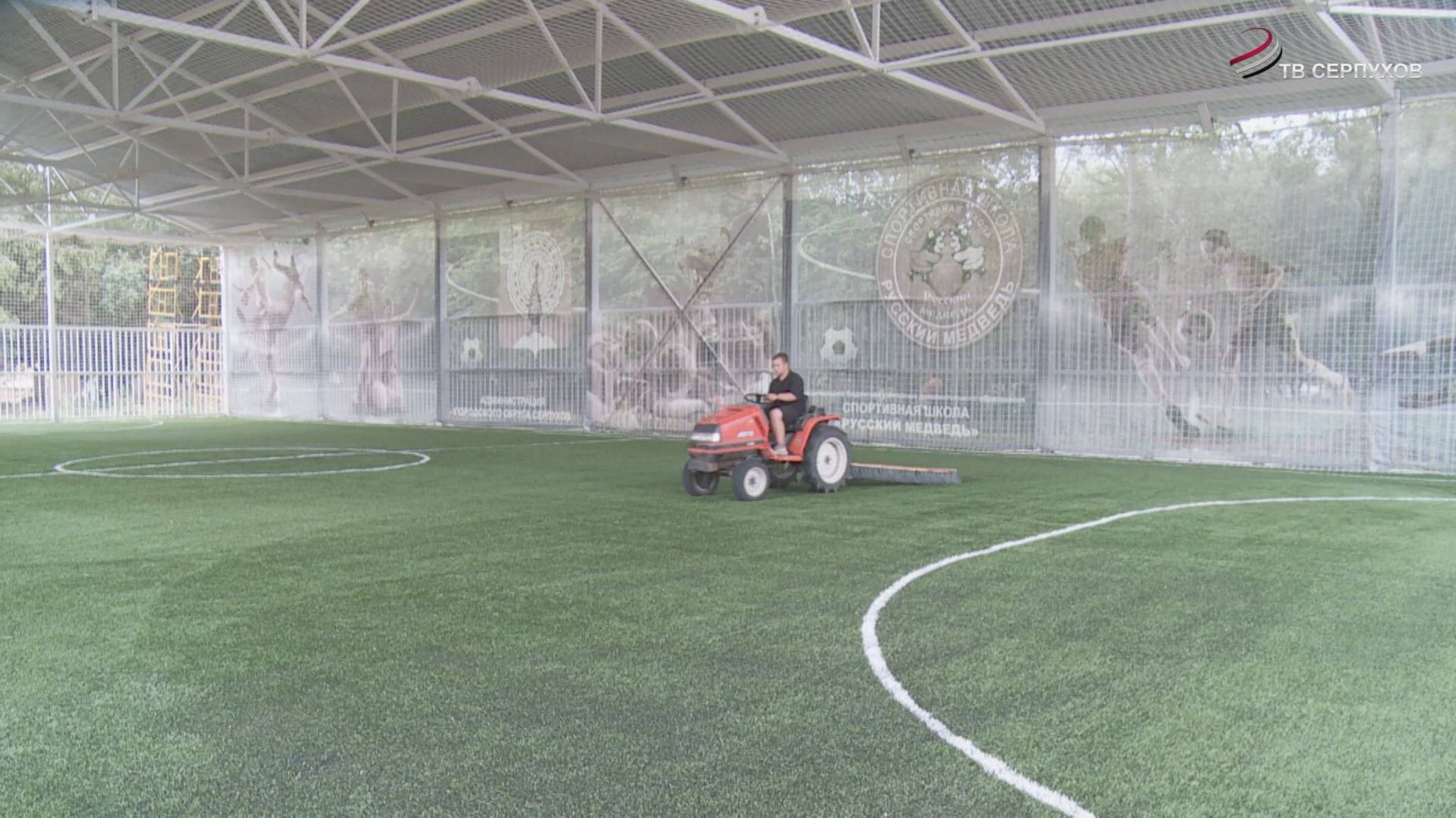 В Серпухове проводится обслуживание поля для мини-футбола в парке «Питомник»