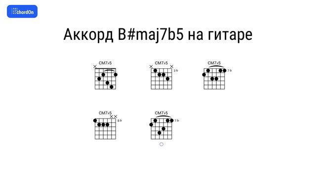 Как играть аккорд B#maj7b5 на гитаре и фортепиано