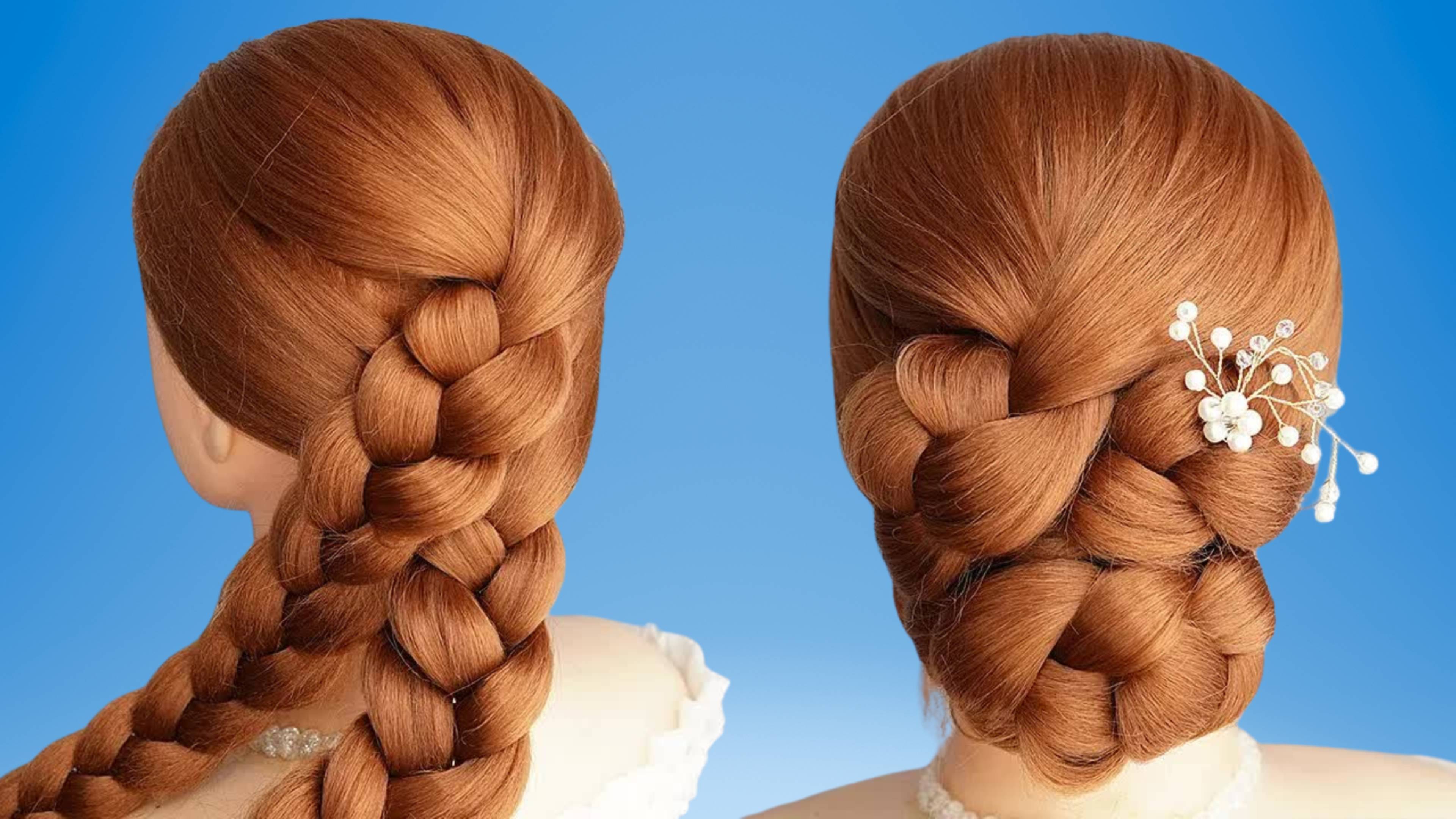 Причёска с плетёным пучком для выпускного и свадебного сезона. Высокие прически для гостей свадьбы