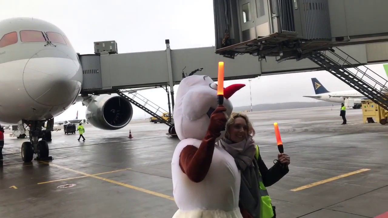 Короткий бекстейдж с первого прилёта Qatar Airways в Аэропорт Пулково, Санкт-Петербург. Снеговик на перроне.