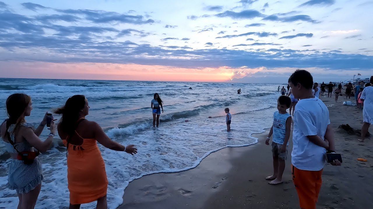 Встречаем закат на пляже Витязево, шторм на море. We meet the sunset on Vityazevo beach, a storm on the sea.