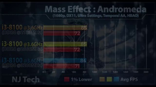2133MHz Vs. 2666MHz Vs. 3200MHz RAM Test || CORE i3 8100 (3.6GHz) In this Video I'll Show You Workstation and Gaming Benchmarks of intel Core i3-8100 with Different RAM Speeds 2400MHz vs 2666MHz vs 3200MHz System Specs intel Core i3-8100 @ 3.6GHz MSI Z370A PRO Mobo 16GB DDR4 RAM @ 2133MHz 16GB DDR4 RAM @ 2666MHz 16GB DDR4 RAM @ 3200MHz Gigabyte GTX 1080 G1 Gaming Cinebench R15 7-zip Benchmark Adobe Premiere Video Export Handbrake 4K to 1080p conversion 1080p Gaming Test: Call of Duty : World War 2 Wolfenstein 2 Assassin's Creed Origins Evil Within 2 Shadow of Wars Overwatch Mass Effect Witcher 3 : Wild Hunt Hitman DOOM Deus Ex : Mankind Divided Battlefield 1 Rise of the Tomb Raider World of Tank CS:GO GTA 5 DOOM Also Watch- intel i7 7740X vs Ryzen R7 1700X - https://youtu.be/Upe4x28Jzps intel i7 7740X vs intel i7 7700K - https://youtu.be/hK1j-ydhj9M intel i7 7820X vs intel i7 7700k - https://youtu.be/ZGCAJSAAwYQ intel i9 7900X vs Ryzen R7 1800X - https://youtu.be/ndYfhir0Ilo GT 1030 vs RX 550 | G4560 | Arcade - https://youtu.be/S8NES1k83KI RX 560 (4GB) vs RX 460 (4GB) - https://youtu.be/ot2yhXo21eY R7 1700X OC vs INTEL i7 7700K OC - https://youtu.be/qjGV2kR2YQk RX 480 vs GTX 1060 - https://youtu.be/vyMQXTSU3fI RX 480 vs GTX 1060 |DX11 vs DX12 - https://youtu.be/t2v4QzR7TkE R5 1400 vs i5 7400 | GTX 1060 6GB - https://youtu.be/LpxBvnDrd8E R5 1600X vs Core i5-7600K - https://youtu.be/3AAOfe3QDRQ RX 570 vs GTX 1060 | G4560 -https://youtu.be/RYrj8HWP4sE Ryzen 5 1600 vs Pentium G4560 - https://youtu.be/D7v4K1GB4JM Thanks For Support and Watching My Video... Please Subscribe my Channel For More updates News.... Twitter - twitter.com/njtech0 facebook - fb.me/njtech0 Background Music: Electronomia Vital NCS Intro:Nishanth Kundar Elegant logo