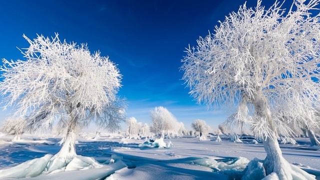 Футаж. Новый год. Новогодний Фон. Зимний лес. mp4