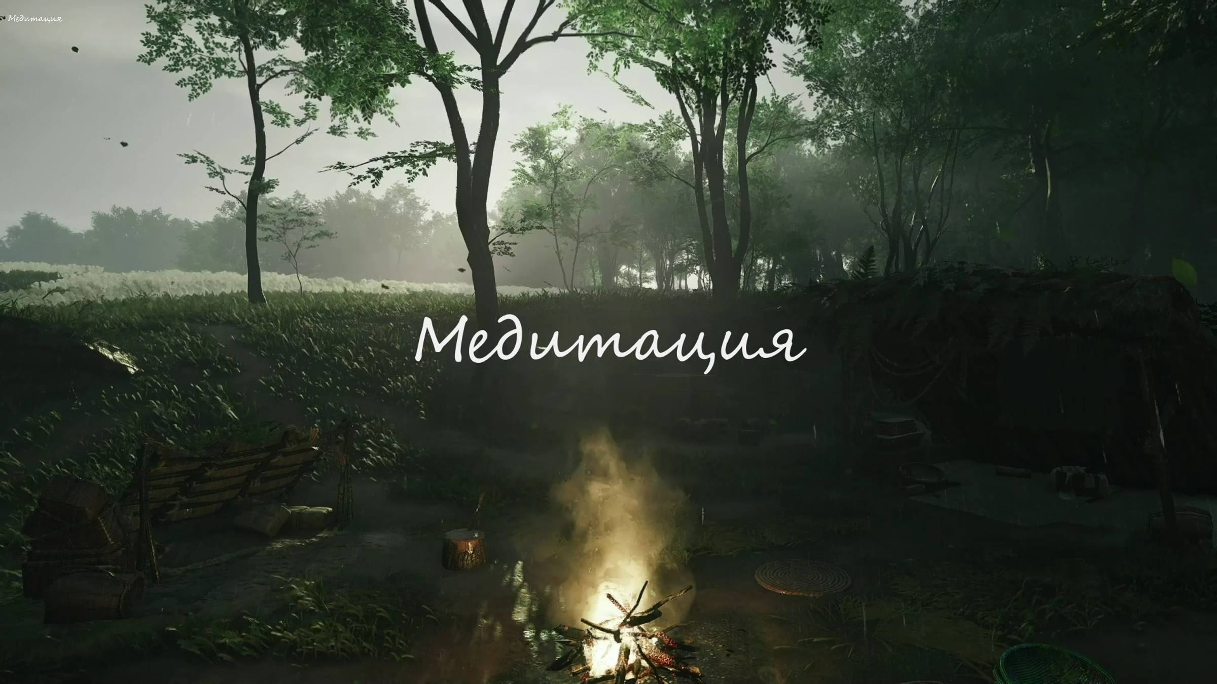 Живая Картина с Костром в Лесу. Мягкий Шум Дождя и Грома.