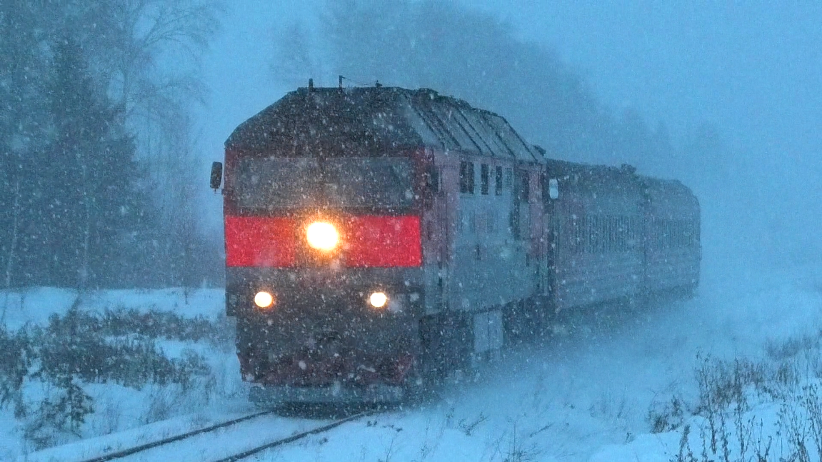 "В снежном плену". ТЭП70-0542 с пригородным поездом Предтурье — Алапаевск