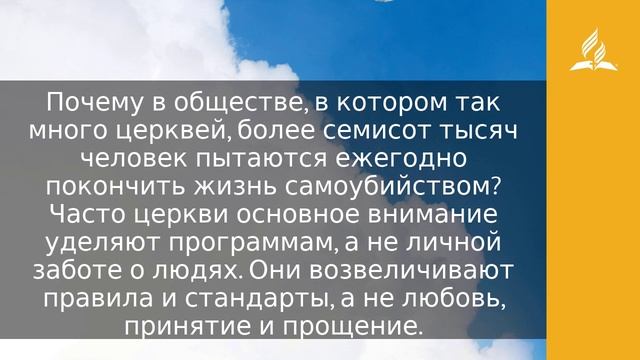 Бог же надежды да исполнит вас всякой радости и мира в вере, дабы вы, силою Духа Святого, обогатились надеждою (Рим. 15:13). Известный английский поэт Александр Поуп в своем наиболее известном сочинении «Опыт о человеке» написал в 1733 году: «Надежда в нашем сердце, как звезда». На сегодняшний день в среднем более 703 000 человек ежегодно пытаются покончить жизнь самоубийством. Надежда перестала давать жизнь их сердцам. Людей, верящих в Божью спасающую благодать, Дух одаряет такой надеждой, что их никогда не покидают радость и мир. Всего за несколько часов до смерти знаменитого портлендского доктора Луиса Махлина его жена Беки сказала ему: «Я увижу тебя утром». Анализируя жизнь Луиса, мы можем сказать, что он имел сильную надежду. Фактически его надежда окрепла на протяжении последних лет, когда он пришел к реальному пониманию Евангелия и крещения Святым Духом. Более того, надежда из его сердца распространялась на всех, с кем он общался. Почему в обществе, в котором так много церквей, более семисот тысяч человек пытаются ежегодно покончить жизнь самоубийством? Часто церкви основное внимание уделяют программам, а не личной заботе о людях. Они возвеличивают правила и стандарты, а не любовь, принятие и прощение. Президент Линдон Джонсон сказал в своей первой официальной речи: «К сожалению, много американцев живет на окраине надежды — одни из-за бедности, другие из-за цвета кожи, и слишком многие из-за того и другого». Но эти люди составляют очень малый процент от общего числа тех, кто пытается лишить себя жизни. В этом материалистическом обществе гораздо чаще теряют надежду не те, кто „не имеет“, а те, кто „имеет“». Как говорит доктор Рой Фэрчелд, профессор психологии в богословской семинарии Сан-Франциско, «надежда — это не просто желание того, чего в настоящее время мы не имеем, а желание пережить полнее то, чем мы уже обладаем» (Finding Hope Again, p. 52). То, что мы получили благодаря жизни и смерти Иисуса, может быть пережито в полноте, с истинной надеждой и радостью посредством силы Святого Духа. Слава Господу! МОЛИТВА Бог надежды, я радуюсь, сознавая, что с Тобой жизнь всегда достойна того, чтобы жить. https://esd.adventist.org/library/periodicals/ezhednevnyie-chteniya/ #адвентисты #АдвентистыСедьмогоДня #Церковь #ЦерковьАдвентистовСедьмогоДня #ЦерковьХристианАдвентистовСедьмогоДня