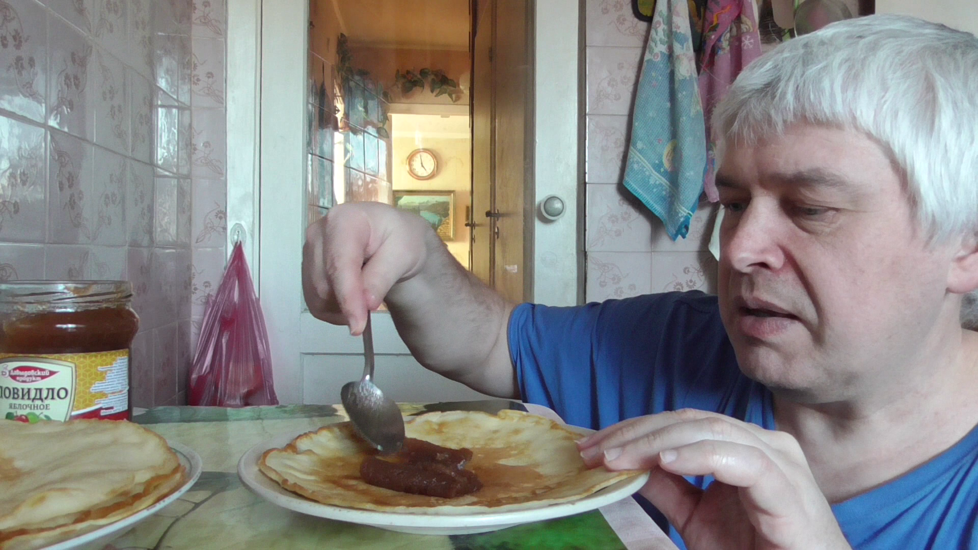 Я кушаю блин с яблочным повидлом