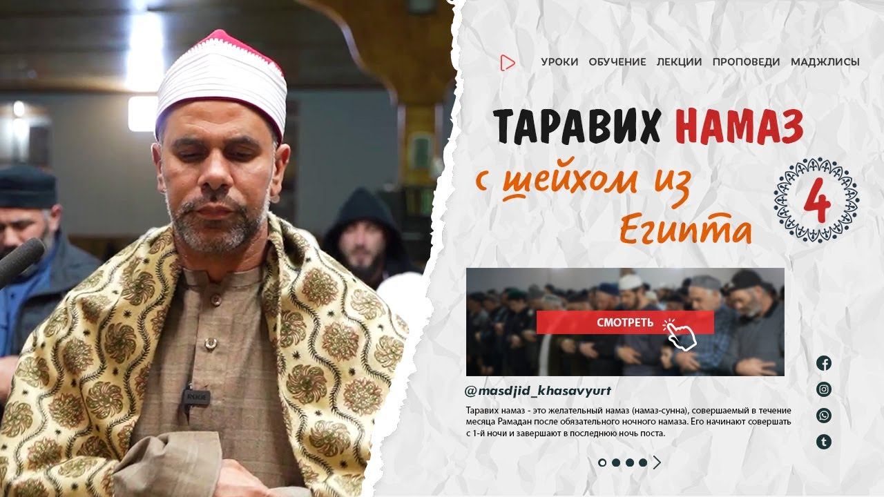 #Коран #намаз #таравих Таравих намаз - это желательный намаз (намаз-сунна), совершаемый в течение месяца Рамадан после обязательного ночного намаза. Его начинают совершать с 1-й ночи и завершают в последнюю ночь поста. _______________________________________________ Мы в OK - http://www.ok.ru/masdjid_khasavyurt Мы в VK - http://www.vk.com/masdjid_khasavyurt Мы в Telegram - http://www.t.me/masdjid_khasavyurt Мы в RuTube - http://www.rutube.ru/masdjid_khasavyurt Мы в YouTube - http://www.youtube.com/masdjid_khasavyurt Мы в Facebook - http://www.facebook.com/masdjid_khasavyurt Мы в Instagram - http://www.instagram.com/masdjid_khasavyurt