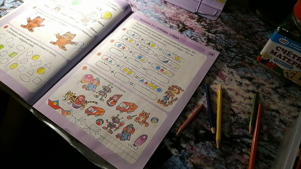 Занимаемся по пособию для дошкольников Л. Г. Петерсон, Н. П. Холина. Математика для дошкольников. 5-6 лет. 11 занятие. РАЗ - ступенька, ДВА - ступенька. Часть 1. Справа. Слева.