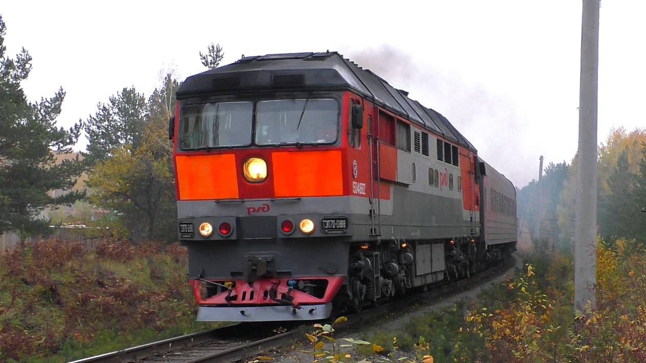 Тепловоз ТЭП70-0188 с пригородным поездом №6783 Егоршино - Екатеринбург-Пасс. следует по перегону Егоршино - Красные Орлы. Свердловская ЖД. Свердловская область, Россия. Приписка: ТЧЭ-13 Егоршино. 30.09.2023