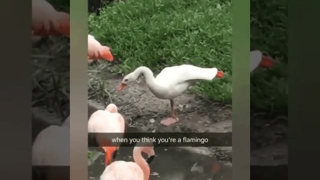 Лебедь втераеться в доверие в стаю розовых фламинго