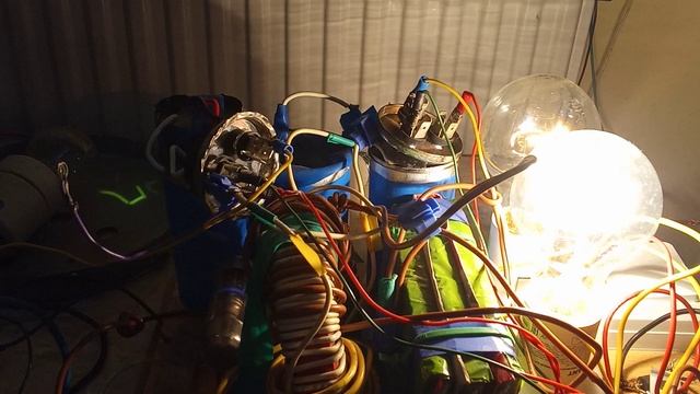 Прерываем входной ток при 26 В. В трансформаторе создаются волновые процессы. Заряжается конденсатор. Пробивается разрядник на 500 В. Запускается нагрузка на 220 В.