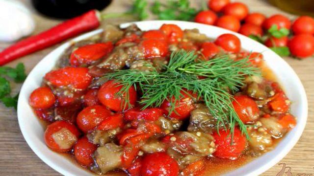 Острый салат из печеных овощей и помидоров черри