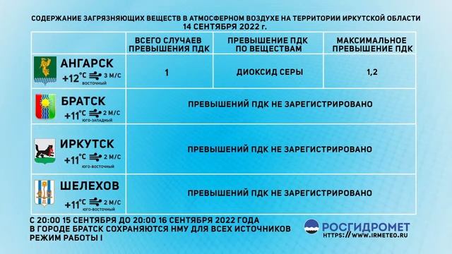 [15.09.2022] Мониторинг состояния атмосферного воздуха 14.09.2022