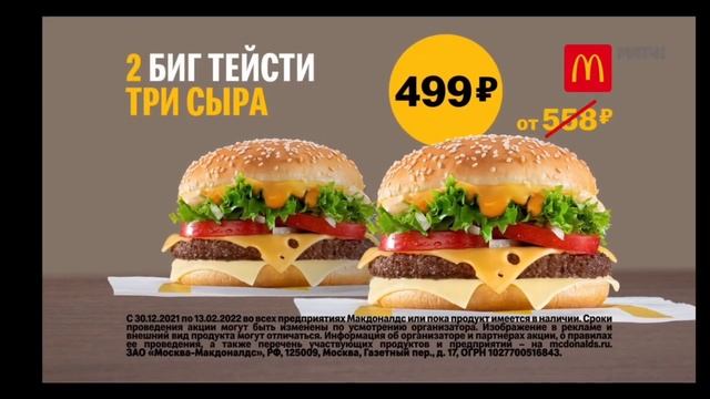 Реклама McDonalds 2 Биг Тейсти Три Сыра за 499 руб. (2022)