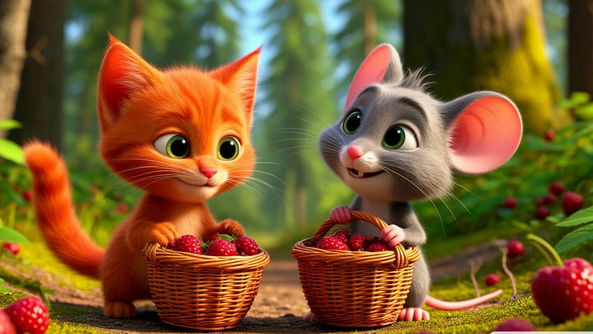 Классное видео о рыжем коте-314 выпуск: Однажды на речке рыжий котенок и серый мышонок встретились и стали друзьями. Они отправились в лес за ягодами и провели веселое время, смеясь и играя. Затем они увидели закат и загадочную луну, которая взошла в небе. Решив остаться, они играли под луной, наслаждаясь моментом. Потом пришла ночь, и им пришлось идти домой. На пороге дома, они вспоминали все приключения и договорились о встрече на следующий день. Улегшись в свои гнёзда, они заснули с улыбкой на лице, зная, что их ждут новые приключения и дружба. Эта история о ценности дружбы и времени с близкими. Вдохновляет на близкие отношения и наслаждение моментами с друзьями.