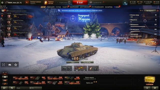 Мир танков. Предновогодняя атмосфера ангара и подарок Итальянец 3 ур. М16.43 Sahariano