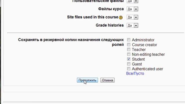 Резервное копирование курса в системе Moodle