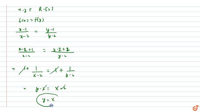 Let `A=R-[2]a n dB=R-[1]dot` If `f: AvecB` is a mapping defined by `f(x)=(x-1)/(x-2)` , show tha...