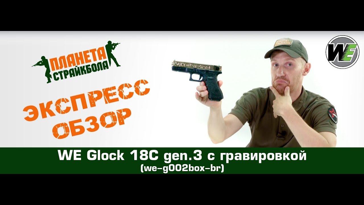 Обзор пистолета WE Glock 18C gen.3 с гравировкой (we-g002box-br)