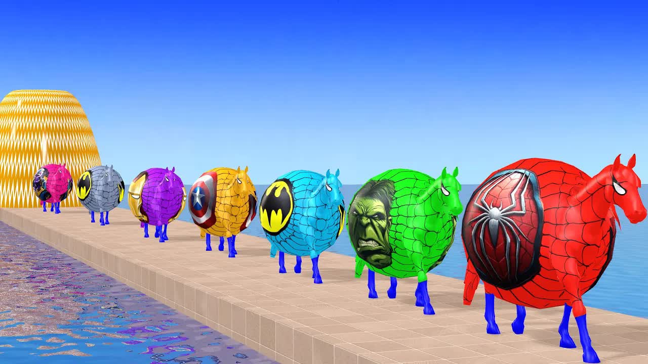 Человек-ПАУК на Красной ЛОШАДИ Пересекает РАДУЖНЫЙ ФОНТАННЫЙ мост с Лошадиными Супергероями, Спасающими Животных в игре