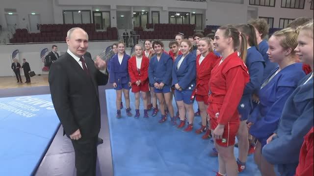Владимир Путин посетил Дворец самбо, являющийся частью спортивного кластера «Город спорта» в Краснодаре. Краснодар 7 марта 2024 года. Глава государства ознакомился с информационными стендами о перспективах развития проекта «Город спорта», а также осмотрел недавно построенный и готовящийся к открытию Дворец самбо. Президенту продемонстрировали раздевалки, тренировочный комплекс и спортивную арену комплекса. По окончании осмотра Владимир Путин кратко беседовал с самбистами, представляющими спортивные школы Краснодарского края. Дворец самбо оснащён спортивной ареной на четыре ковра, разминочным и тренажёрным залами, а также трибуной на 3 тысячи зрителей. Введён в эксплуатацию в конце февраля. В мае здесь пройдёт первый крупный турнир – финальные соревнования летней Спартакиады учащихся России. Спортивный кластер «Город спорта» в Краснодаре, общей площадью 110 га, помимо Дворца самбо включает в себя Ледовый дворец, «Баскет-Холл», Дворец водных видов спорта и учебно-тренировочные залы «Чемпион». На стадии проектирования – Дворец гимнастики. Также готов проект спортивной школы-интерната на 500 мест, к его строительству планируется приступить в 2024 году.