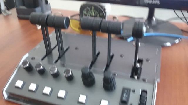 В РУДе (дросселе) "IMMERSER VR" установлены механики GVL "Универсал" и "Фиксация" на 3 положения. Механики железные с возможностью регулировки силы сопротивления, оси на подшипниках с бесконтактными датчиками МагРез. Рукоятки механик распечатаны на 3Д принтере. На передней панели корпуса: - 6 кнопок; - 1 двух позиционный переключатель без фиксации в крайних положениях, как две кнопки; - 1 потенциометра на передней панели; - 8 энкодеров, из них 4 одиночных и два двойных (соосных). Корпус выполнен из "композита" толщиной 3мм, собирается как 3D пазл... Надписи на корпусе выполнены при помощи лазерного гравера, он сжигает слой краски и проступает натуральный цвет алюминия. Цвет, размер и форма рукояток распечатанных на 3Д принтере могут быть выполнены с учетом пожеланий заказчика. Цвет и размер рукояток на потенциометрах и дополнительных механиках может отличаться от тех что на видео (зависит от доступных на момент заказ). По вопросам и предложениям пишите тут или на мою электронную почту GVL224@ukr.net In the RUD (throttle) "IMMERSER VR" mechanics GVL "Universal" and "Fixation" are installed on 3 positions. Iron mechanics with the possibility of adjusting the resistance force, axles on bearings with non-contact sensors. Handles mechanic are printed on a 3D printer. Front panel: - 6 buttons; - 1 two position switch without locking in the extreme positions, like two buttons; - 1 potentiometer on the front panel; - 8 encoders, 4 of them are single and two are double (coaxial). The case is made of a "composite" 3mm thick, going like a 3D puzzle ... The inscriptions on the body are made with the help of a laser engraver, it burns a layer of paint and the natural color of aluminum appears. The color, size and shape of the handles printed on the 3D printer can be customized. The color and size of the handles on the potentiometers and additional mechanics may differ from those on the video (depends on available at the time of the order). For questions and suggestions, write here or on my email GVL224@ukr.net