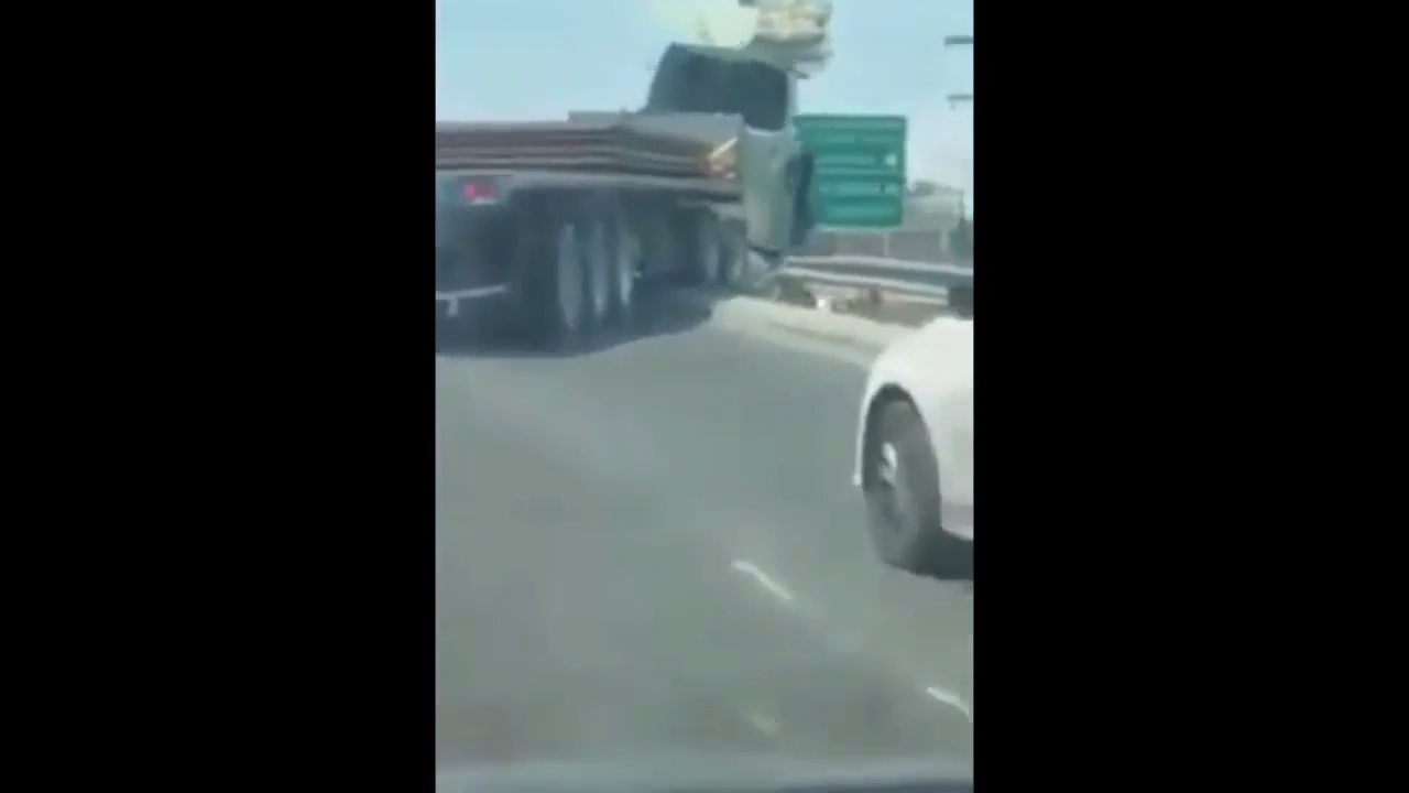 Один дальнобойщик не пропустил другого на дороге, что привело к небольшой толкотне большегрузов. В итоге обиженный водитель немного не рассчитал и вылетел с моста. #падение#мост#грузовик