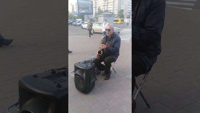 Уличный музыкант. Профессионал - кларнетист симфонического оркестра играет на саксофоне.