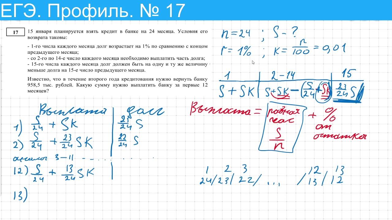 ЕГЭ математика 2021 профиль № 17 5 января планируется взять кредит в банке на 24 месяца