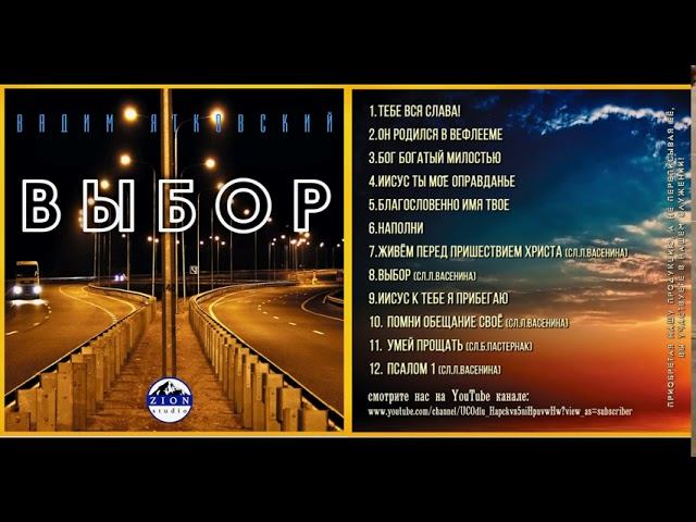 Шалом мои друзья! Рад сообщить вам о выходе нашего нового альбома «Выбор». В альбом вошли 12 песен многие из них родились в молитве. Здесь выложена демо версия альбома. Полный альбом вы можете заказать у нас. Друзья ваши пожертвования позволяют нам выпускать новые песни! Чтобы свидетельствовать о Иисусе Христе и спасении в имени Его!!! Для пожертвований: PAY PAL моего сына Ятковского Дмитрия https://www.paypal.me/DimaYatkovsky Сбербанк России Карта моего сына Ятковского Дмитрия: 5469 3800 7360 5411 карта Беларусбанка: 5470 8700 4231 4852 Вадим Ятковский https://www.instagram.com/vadimyatkovski/ https://www.facebook.com/vadim.yatkovski https://vk.com/id40651734 https://ok.ru/profile/173523840403