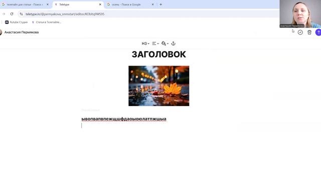 Рассказала в видео уроке, как печатать статьи в на платформе телетайп. Привет! Меня зовут Анастасия Пермякова. Я наставник по привлечению клиентов и стабильным продажам в микроблогах. Мои канал в телеграм https://t.me/permyakova_smm Написать мне в телеграм https://t.me/permyakova_smmstart