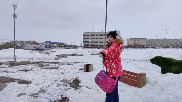 Россия. Крайний Север#Ямал#Лабытнанги 19.04.2022. Со школы домой. идёт снег.