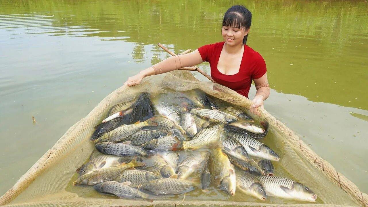 Ловлю карпов в искусственном пруду, чтобы продать на рынке. Жизнь во Вьетнаме