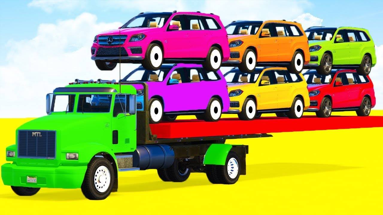 Мультики для детей. Цветные джипы на автовозе. Изучаем цвета с машинками. Мультики про машинки