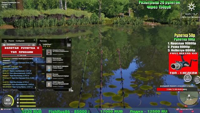 Поддержка донатом https://new.donatepay.ru/@1032463 Альтернативный донат https://www.donationalerts.com/r/kalyamba11 5536913964533059 карта Тинькоф Если стрим лагает,смотри стрим на трово https://trovo.live/s/Kalyamba_na_Ribalke Тг https://t.me/kalyamba_na_ribalke Мой ВК - https://vk.com/kalyantv НИК в игре kalyan11 НАШ ДС https://discord.gg/4ZzSQkQtsK Заказ водоема на 1 час - 500р ( весь стрим 2500р ) Модерка на канале 1300р ( каждая следующая на 100р больше) ✅Призы в рулетке "ЗОЛОТАЯ" 500р ✔ ЗОЛОТО ✔ ПРЕМ ✔ КАТУШКИ РАПТОР 40, ВЕНГИ, ТАЙГА, СИЛЬВЕР 80, И другие ✔ ПАЛКИ ПИЛКЕРНАЯ, ДОНКА МОРСКИЕ, ✔ РОД ПОД, СТУЛЬЯ ✅Призы в рулетке СТАНДАРТ : 100р ✔ катушкИ РАПТОР 40, ВЕНГИ, ТАЙГА, СИЛЬВЕР 80, И другие ✔ катушки 60 для медного ( ЭВИИ, НАТОРЫ, ГОЛДА, и тд) ✔ ПИЛКЕРНОЕ УДИЛИЩЕ КОРОЛЕВА ОКЕАНА ✔ Морское Донное удилище ✔ прем ( 3, 7, 30 дней) ✔ золото ( 1, 3, 5, 10, 20 ,50) ✔ билет на море ( 1, 3, 5 дней) ✔ голд наживка и др. ✅Призы в рулетке "СТАРТОВАЯ" 50р ✔ катушка Венга ✔ катушка "silver80" ✔ катушка "БЕЛЫЙ КАЛИБР" ✔ катушка "Черный калибр" ✔ катушка "Протон" ✔ катушка "Нарга 6000" ✔ Набор Фидерист и спинингист ✔ Карповик Фортуна ✔ фидерные удилища ✔ прем, золото, алкашка, наживки и тд P.s Рулетка это не казино, а награда за поддержку стримера. Вечный ТОП ПОДДЕРЖКИ (10.06.2025) 1. Леха сварной 214 572 2. Dimon_pokemonchik 127 034 3. Skreb79 103 061 4. Interceptor 96 230 5. FishRus86 82 500