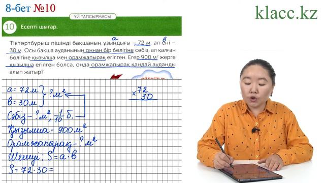 Математика 4-сынып, 3-бөлім, 8-бет 10-есеп, 131-сабақ. 1-10 сыныптардың барлық 8 пәнінің дайын үй жұмыстарын https://klacc.kz/ сайтынан көре аласыз
