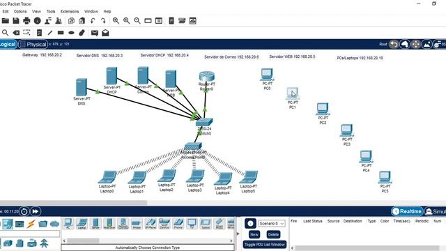 Creación de Servidor de DNS, DHCP y Servidor WEB con Packet Tracer, así como también se va a trabajar con un Access Point