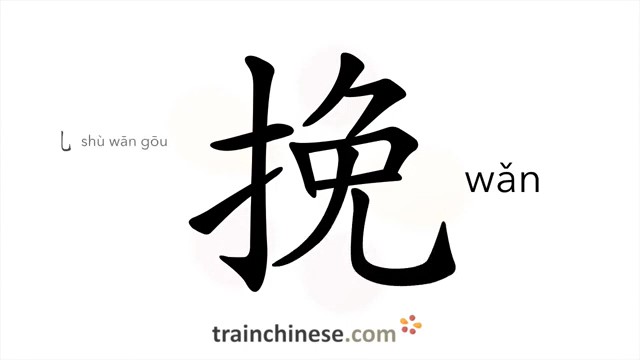 挽 (wǎn) to hold; pull, draw; roll up; send funeral ode; lament death