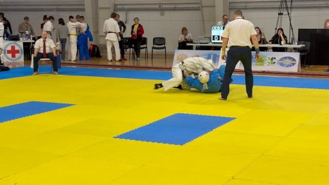 22.02.2025 в Ульяновске прошли V Всероссийские соревнования по кудо на призы ветерана Воздушно-десантных войск, гвардии генерал-майора Орлова В.И. Бой в категории 240 ед. 16-17 лет. В синем Артем Ижиков (Нижегородская обл.), в белом Марк Чернов (Кировская обл.).