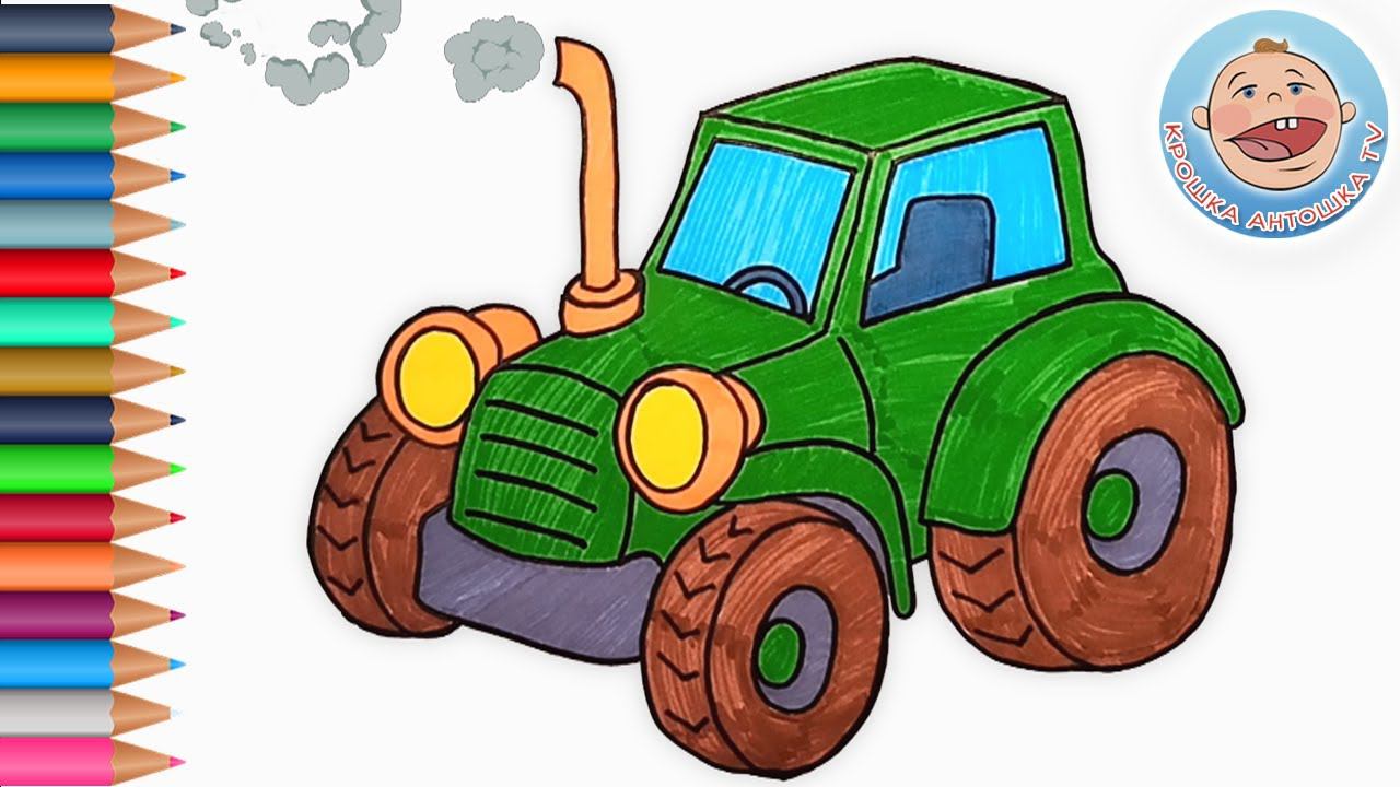 РАСКРАСКА - Рисуем ТРАКТОР - Развивающее видео про машинки для детей