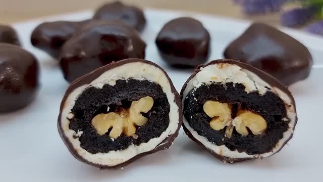 Ингредиенты: 8-10 шт чернослива; 150 г белого шоколада; 150 г черного шоколада; 1-1,5 чайная ложка растительного масла; 8-10 половинок ядер (бабочек) грецкого ореха; Всем вкусных минуток! Спасибо что, смотрите👀 наши ролики! Если Вам не сложно, подпишитесь🔊 на наш канал, нам будет приятно! Если Вам понравился рецепт, поставьте 💘,сделайте репост;) Для развития канала,поддержите нас пожалуйста🙏 небольшой суммой в размере 10 руб.💲. Вам мелочь, а нам приятно.🌹