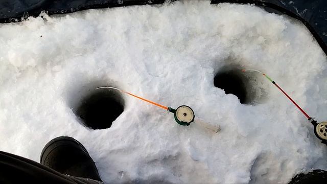 Приехали на озеро было-30 мороза забурился, до обеда шол окунь правда мелкий, в обет затих. Перешел на другое место, начал ловится карась.