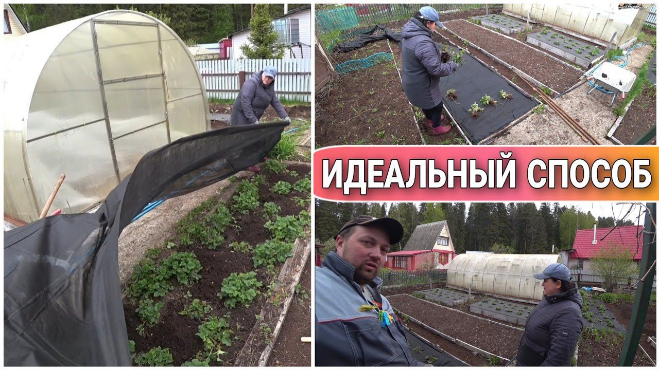 ВЛОГ! Укрываем грядку с клубникой//Виктория под укрывным материалом//Убрали землянику//Дачные будни