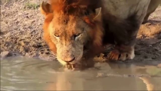 Черепаха выгоняет льва с водопоя