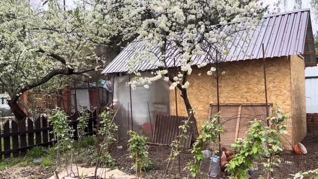 Май на даче . Наступает райское время , зацветают сады . Обзор участка сада и теплиц
