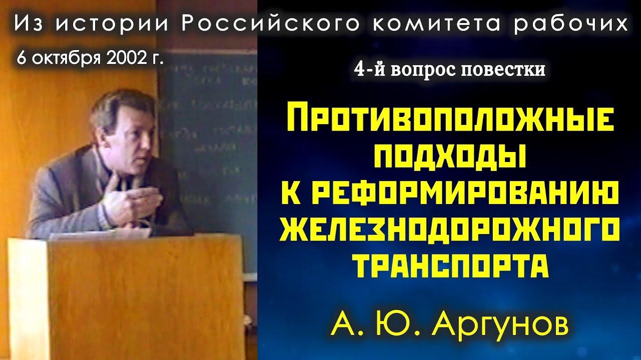 Противоположные подходы к реформированию железнодорожного транспорта. А.Ю.Аргунов. 4-й вопрос.