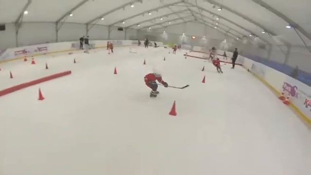 Работа одной из станций во время тренировки Хоккейной академии Дениса Абдуллина