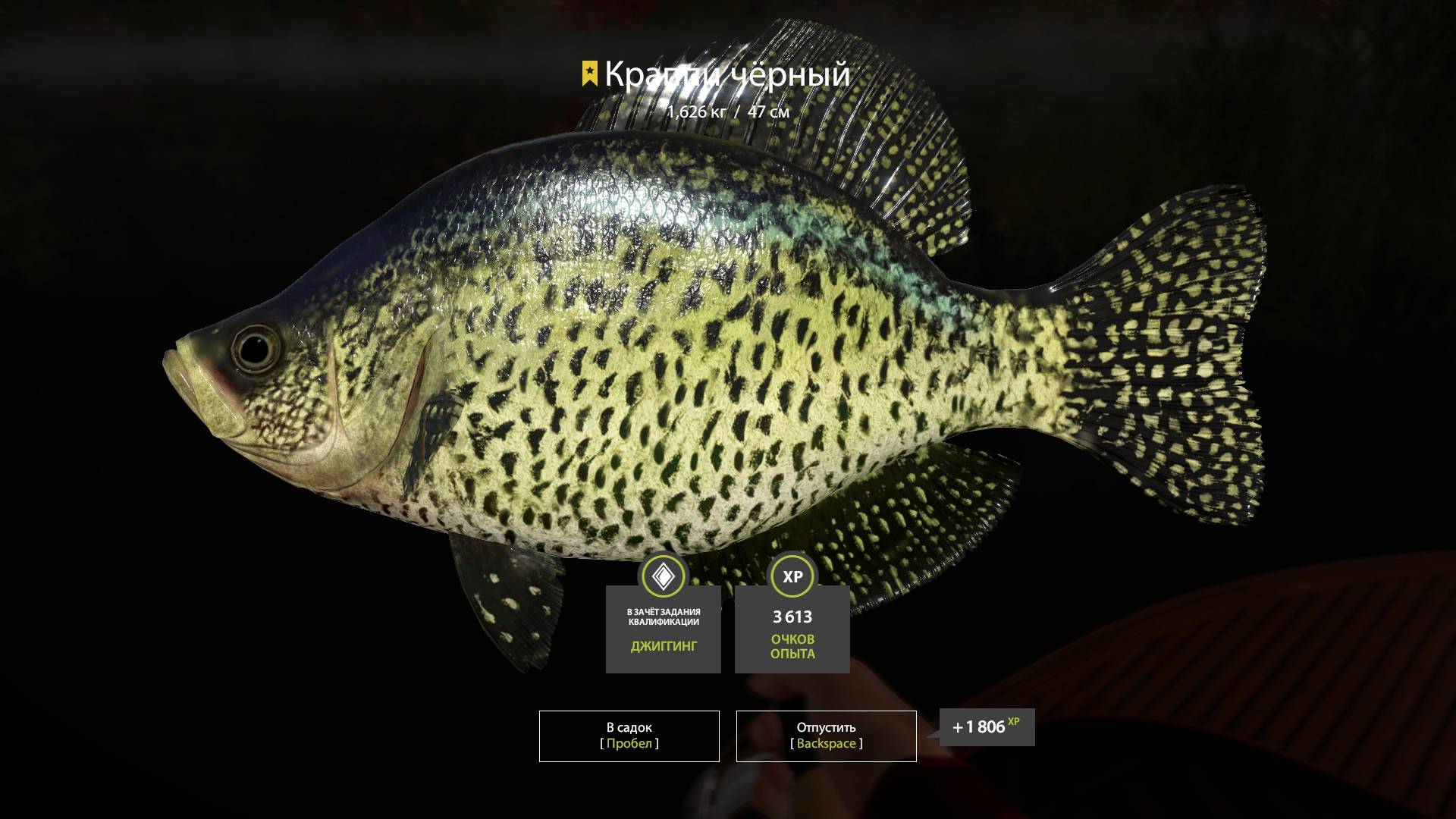 Русская Рыбалка 4 Трофей (Краппи черный) оз. Лосиное